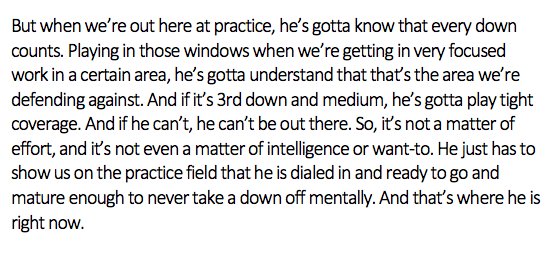 Good to hear. Pagano just needs to plug him in and let him play, and the hell with this inactive shit. Pagano wouldn't know talent if it bit him in the ass.